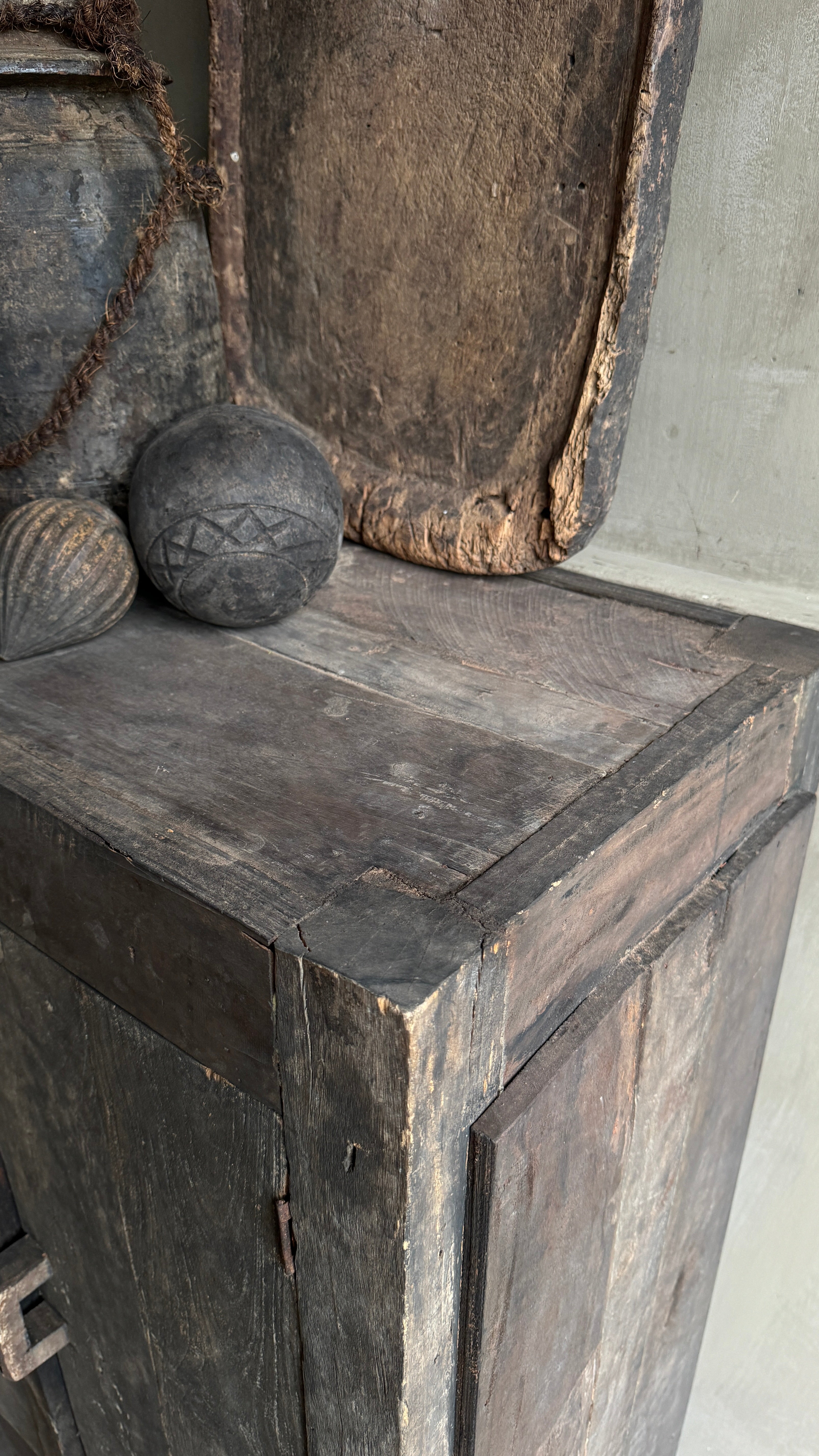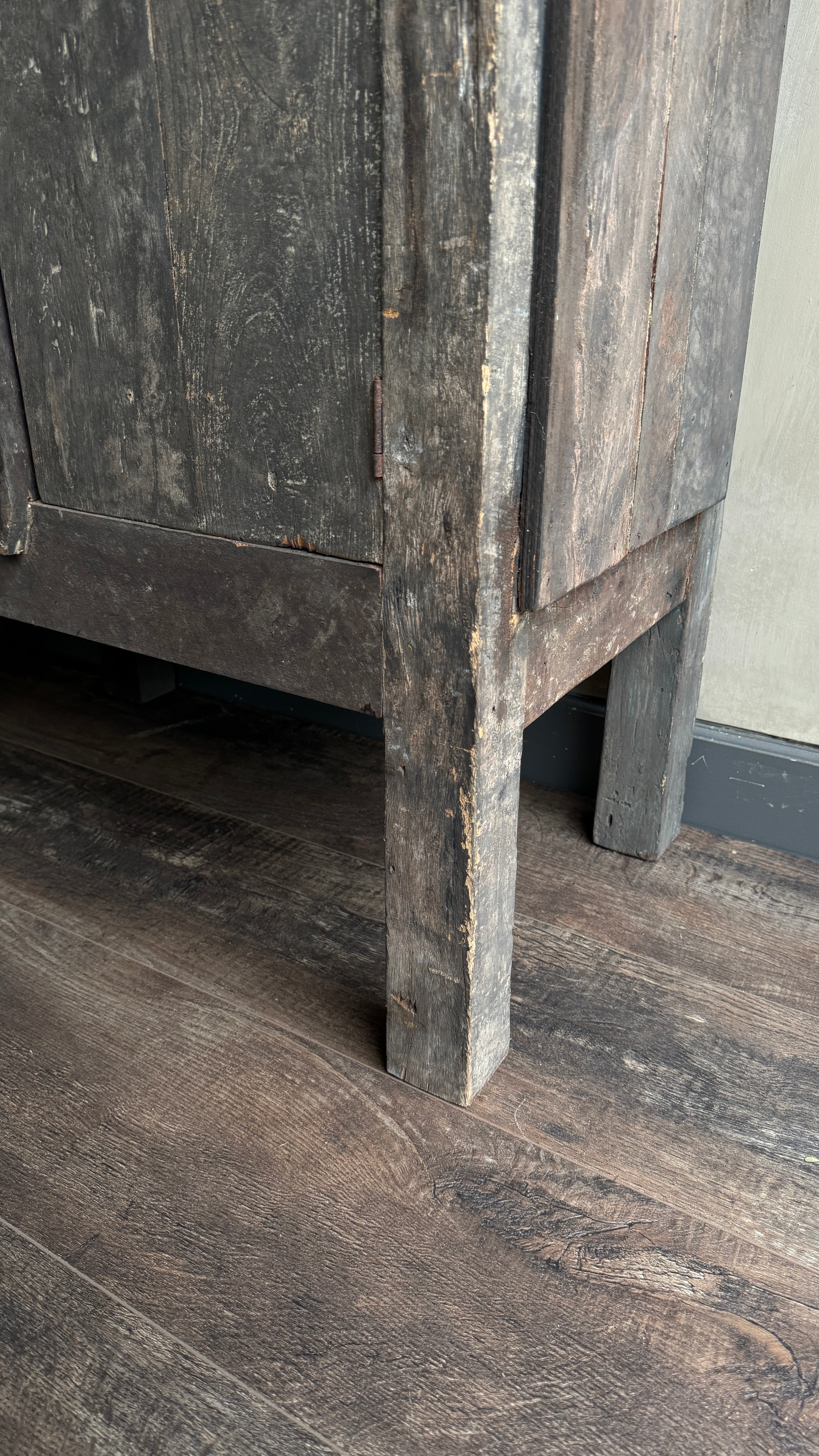- De kast heeft verweerde bruin/grijs tinten