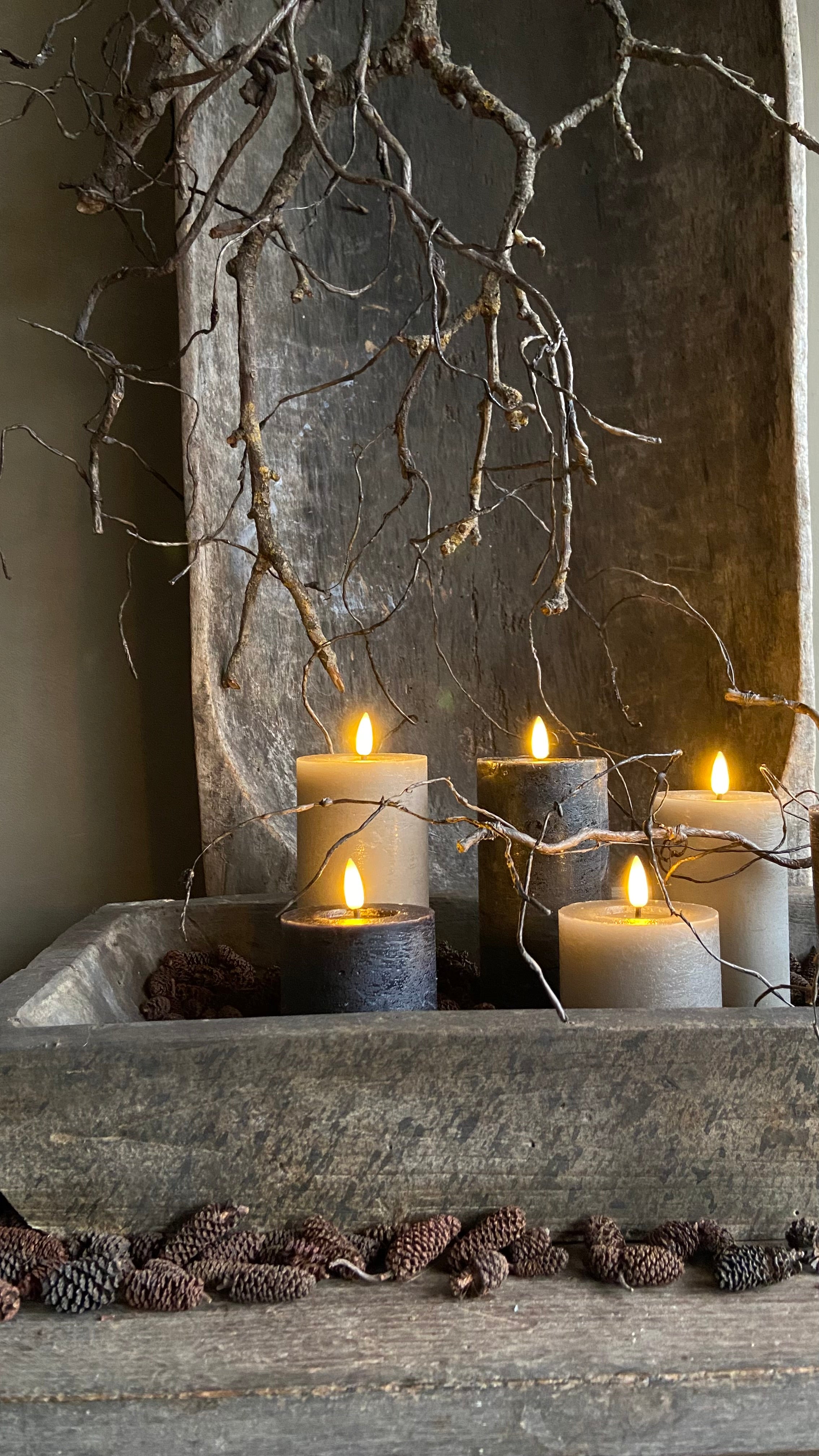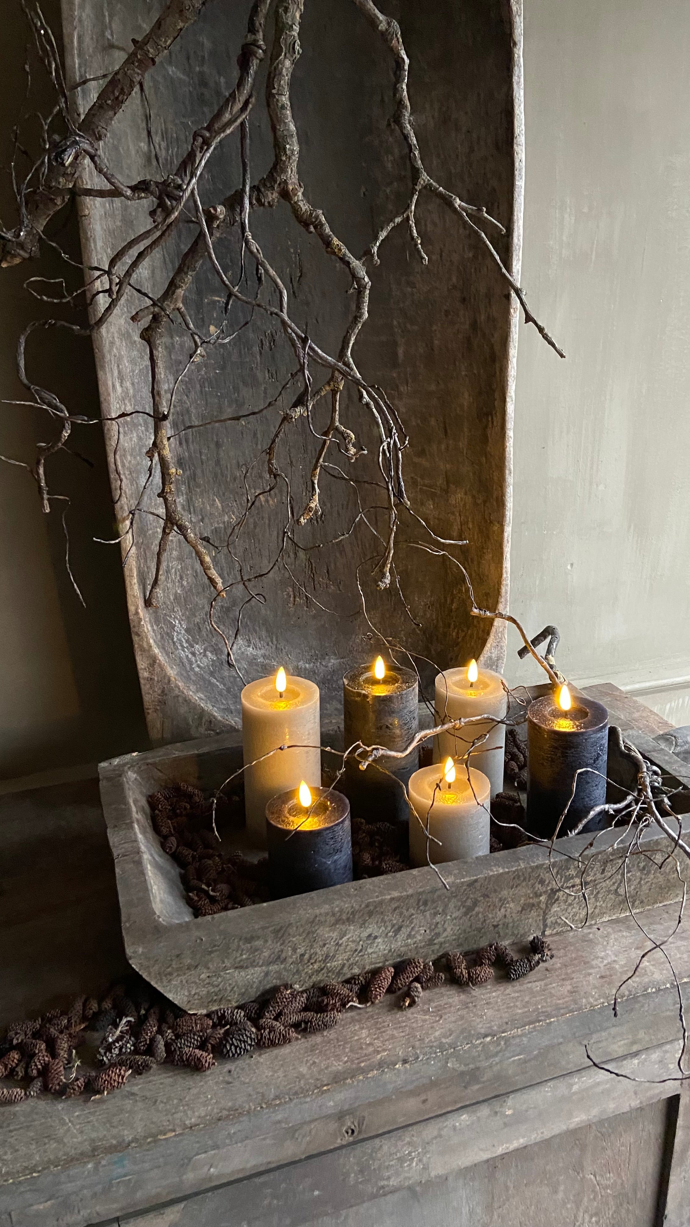 - LED kaars L: Hoogte 15 cm, doorsnede 7,5 cm