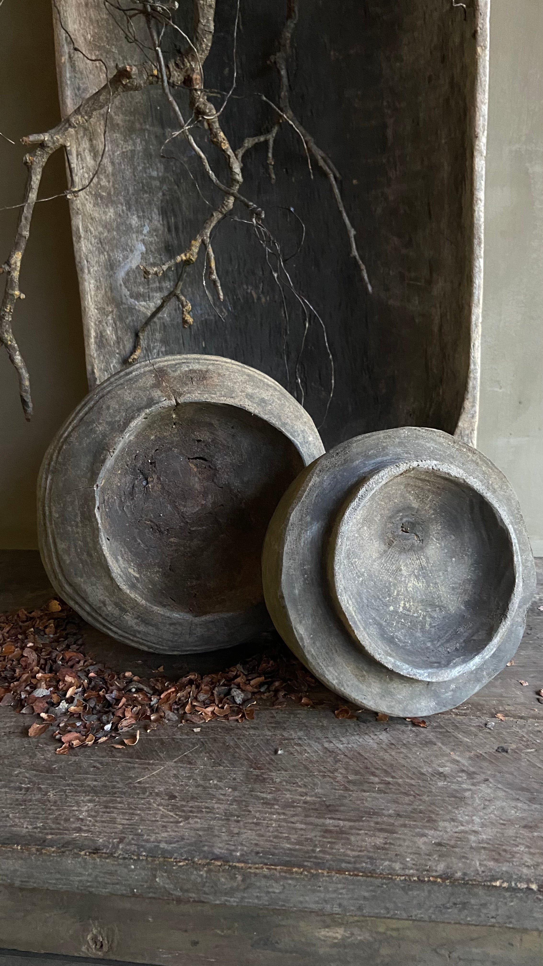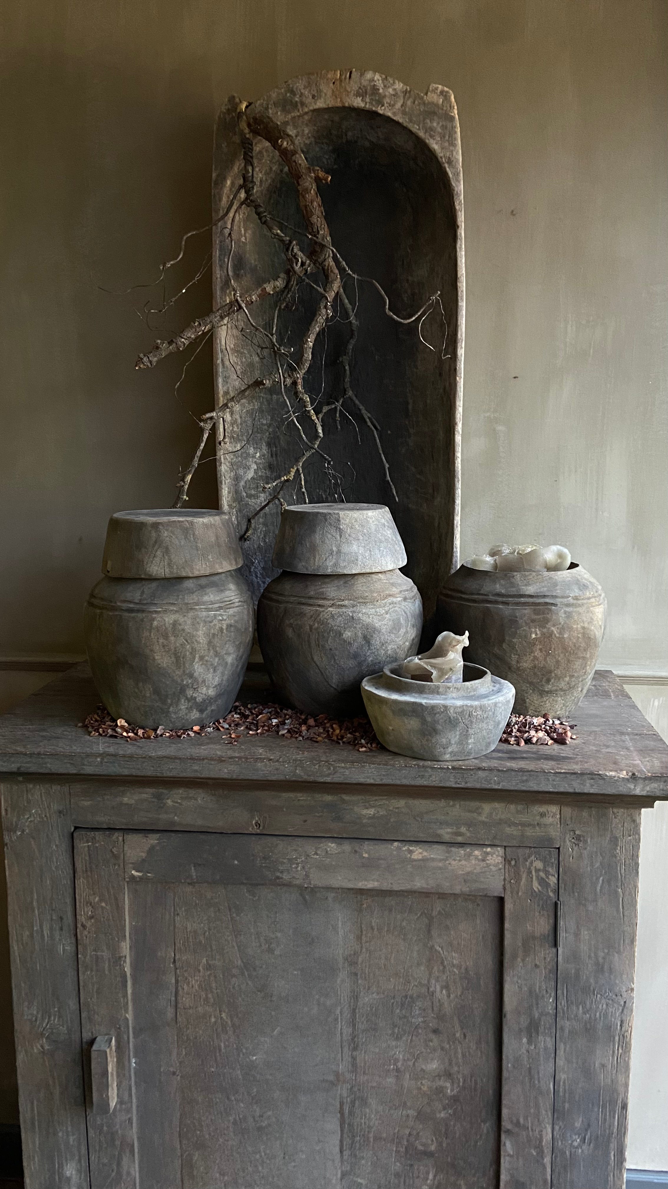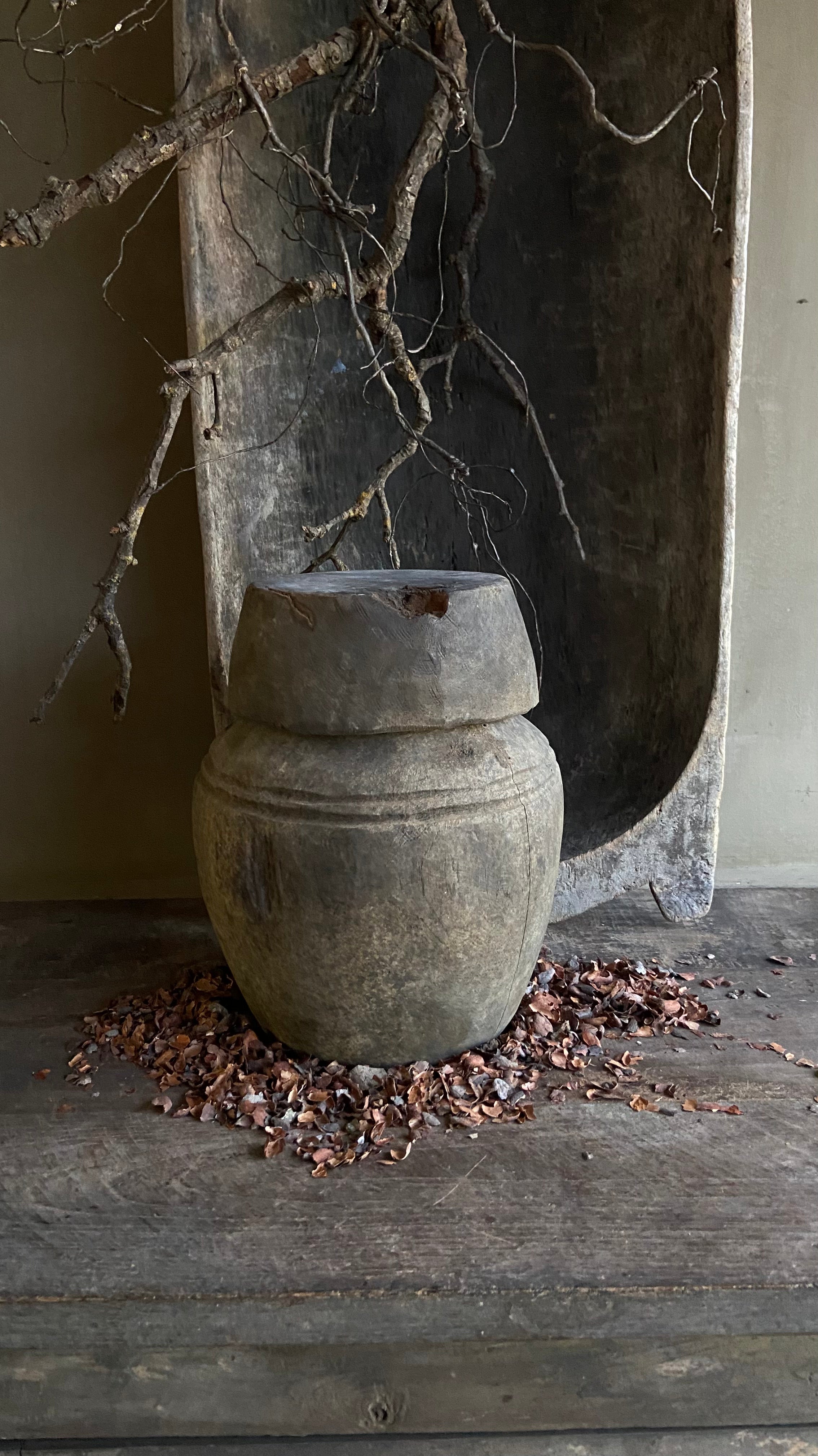 Massieve Houten Pot met Deksel – Vergrijsd – 30,5 cm hoog