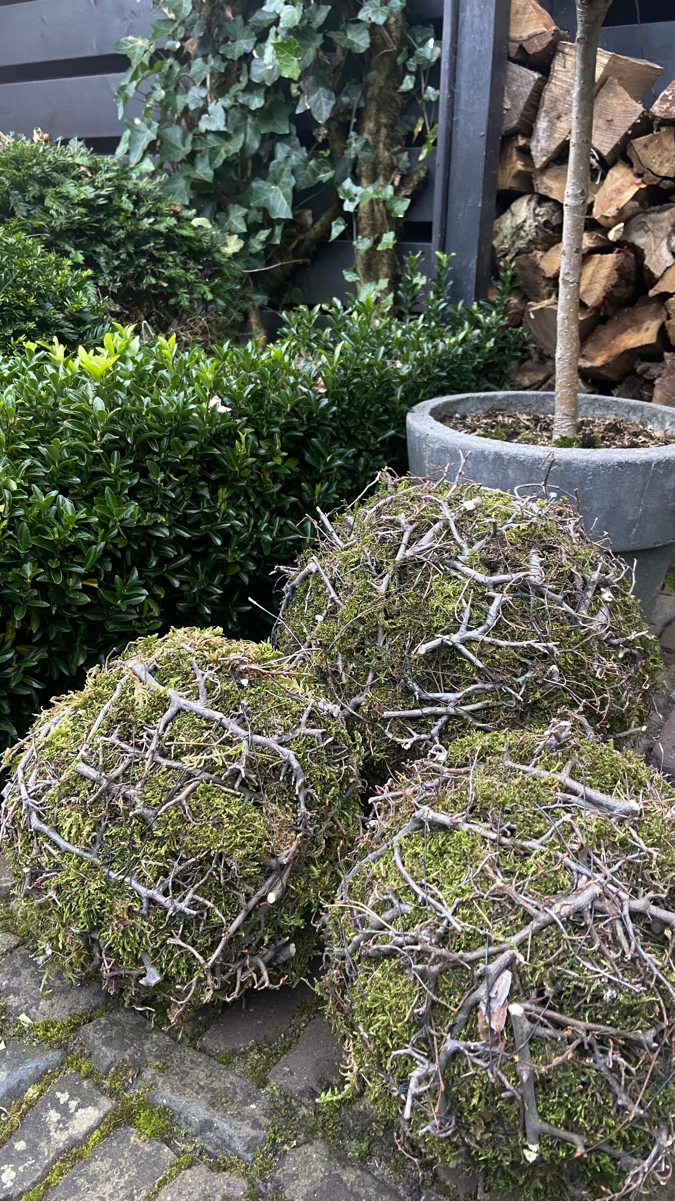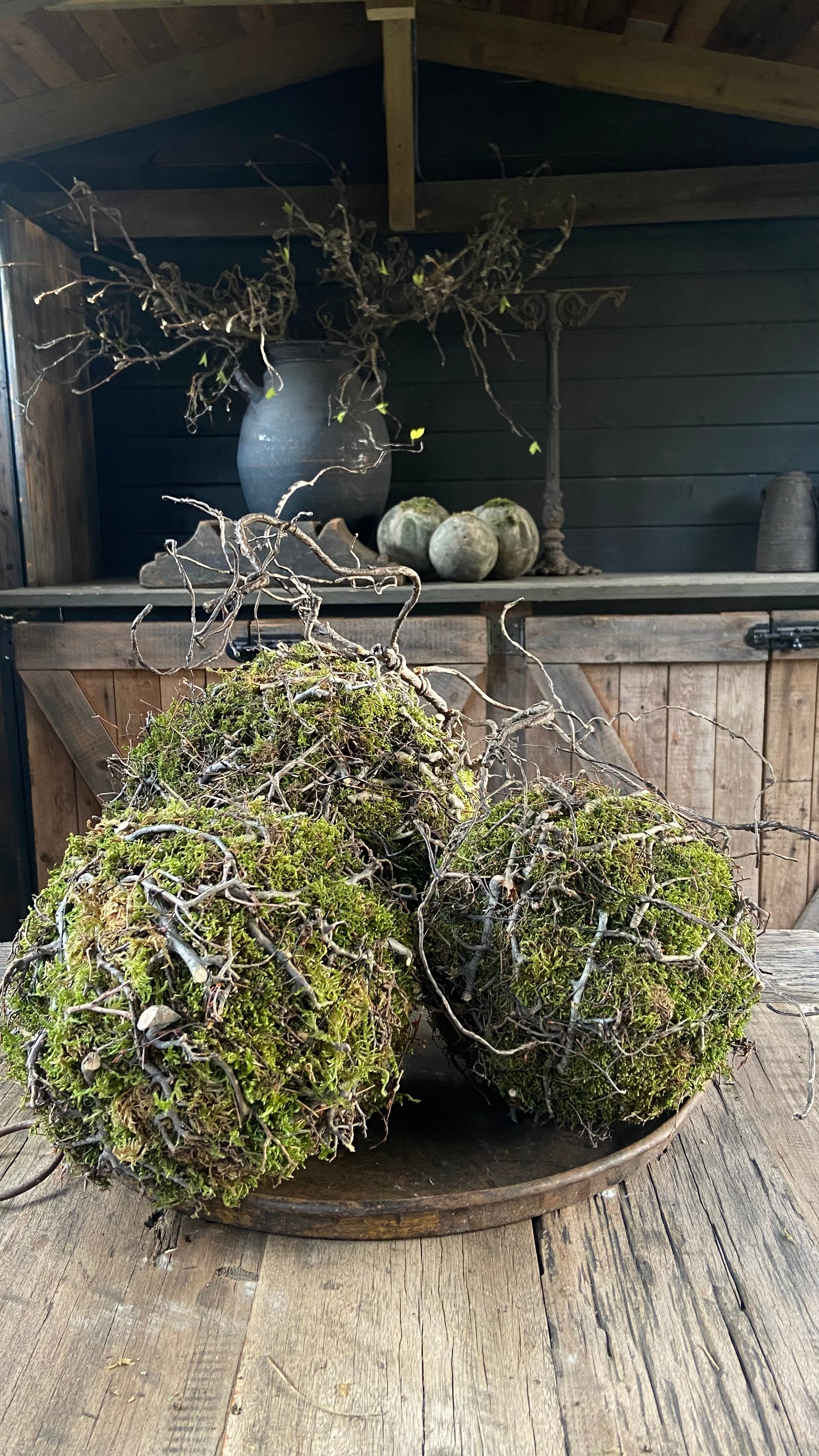 Elke mosbal wordt zorgvuldig met de hand gemaakt, waardoor geen twee exemplaren exact hetzelfde zijn. De combinatie van mos, takjes en natuurlijke materialen zorgt voor een robuuste, maar toch verfijnde uitstraling. Ideaal als sfeermaker op een tuintafel, tussen planten in de tuin of decoratief in huis.